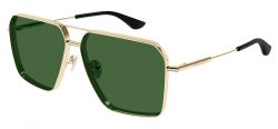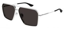 The Alexander McQueen AM0500S Sunglasses are a sleek, full-metal design featuring the refined presence of the Cross-Bar at the nose, end pieces, and temple details, perfectly contrasting with the bold, thick metal rim. The frame offers a rectangular double-bridge shape tailored for a masculine look. The new McQueen logo is on the temples for a signature finish.