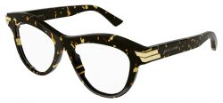 A full acetate feminine frame design that flaunts a distinctive cat eye silhouette. In true Bottega Veneta heritage, the styling creates a opulent piece that can be worn with a range of outfits and is characterised by sharp volumes. Finished in a unique intrecciato colourway and the bold fringed ribbon motif enriches the temple and endpieces.