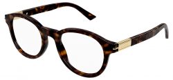 The GG1503O glasses from Gucci are a masculine round acetate frame that features a metal plate design including the Gucci name engraved featured on the temple. The GG1503O is the perfect frame to finish your look and be a stand out accessory.