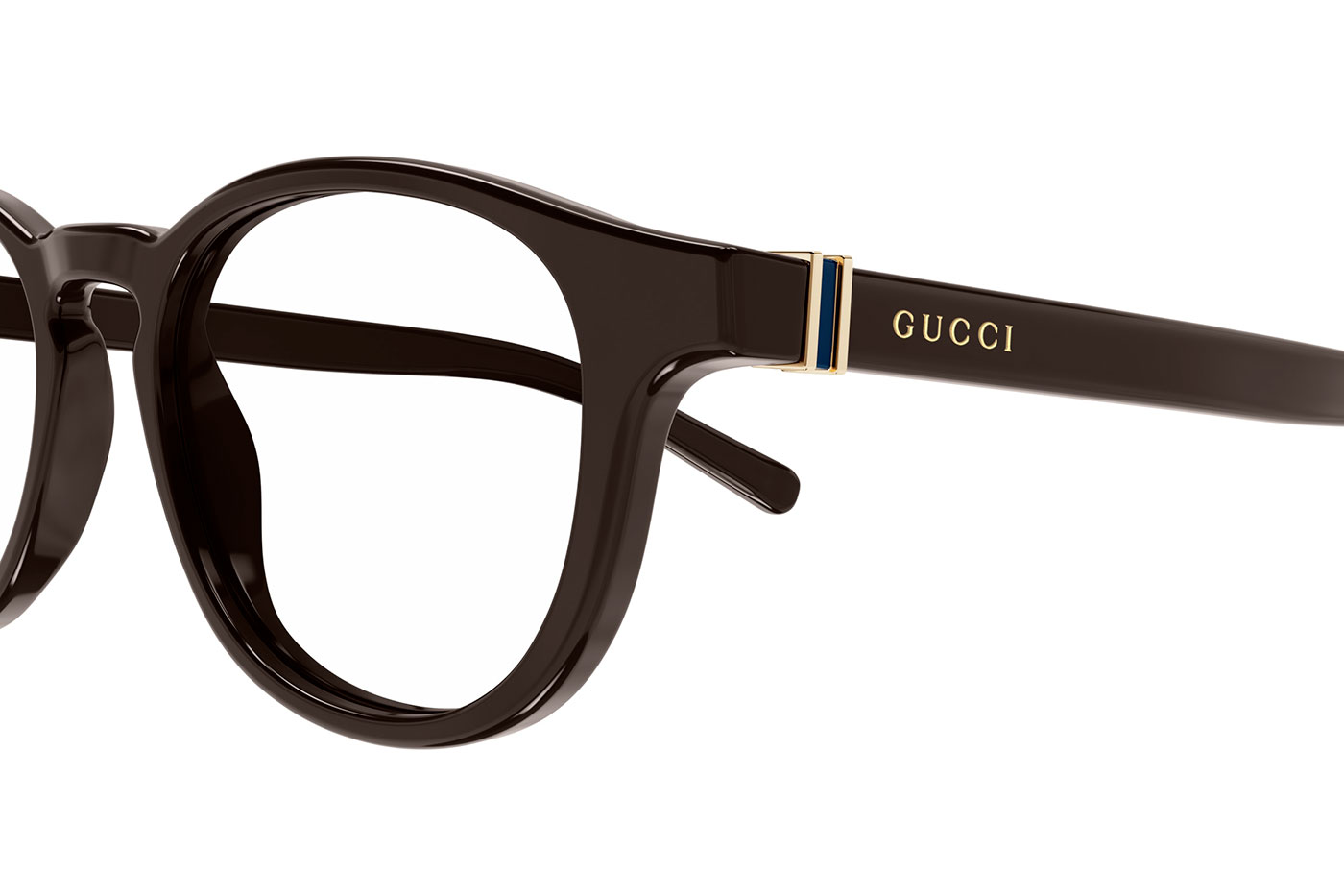 Brand new from Gucci comes the GG1510O glasses, a rounded masculine frame with the iconic Gucci logo embellished through an enammelled metal insert on the hinges of this stylish and versatile frame.