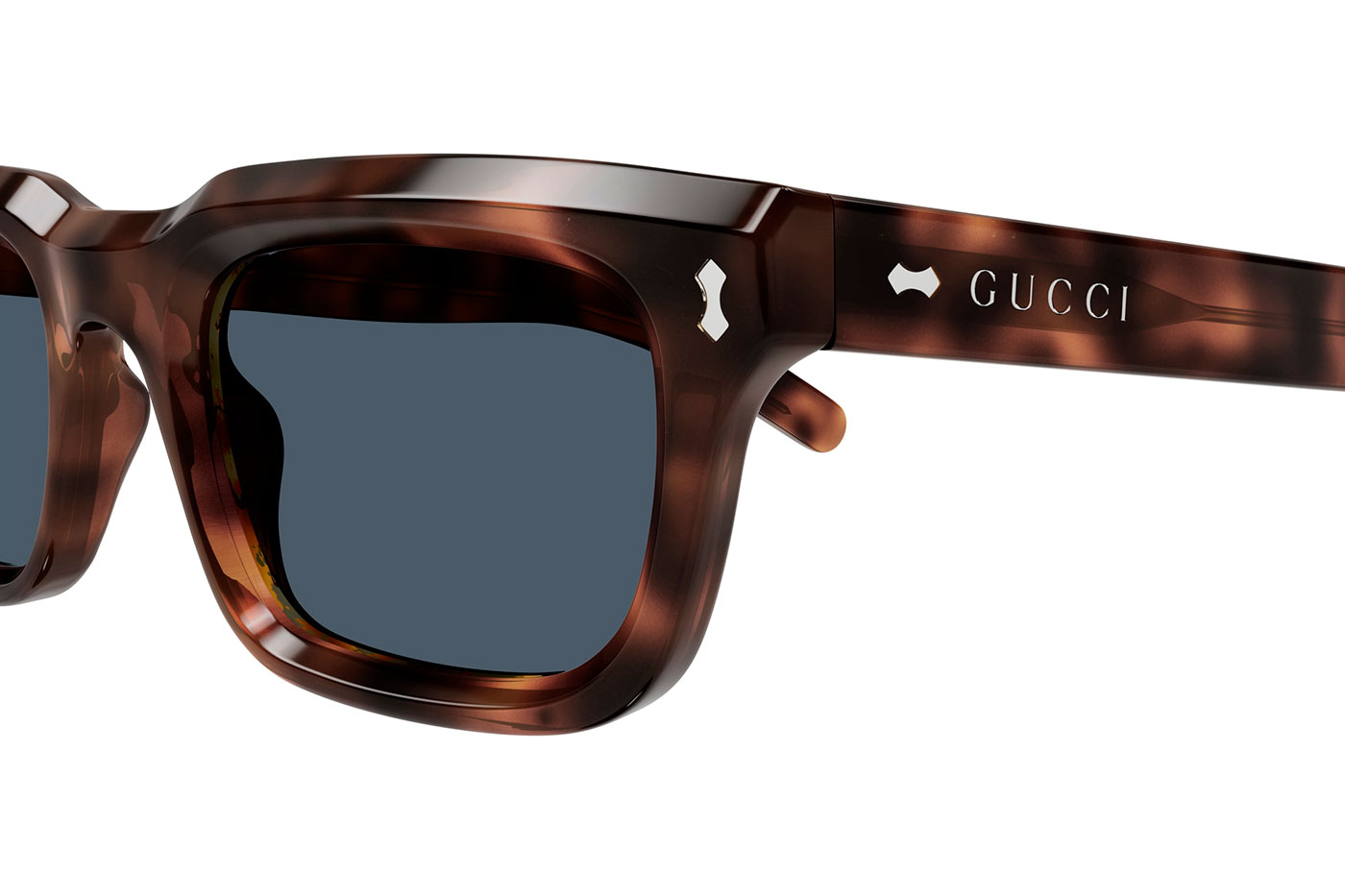 The GG1524S sunglasses are one of Gucci’s latest designs and are part of the SS24 collection. This bold design features sleek bevelled edges on a rectangular, visible wire cores through the temples and lasered GUCCI lettering logo, embellished with iconic rivets.