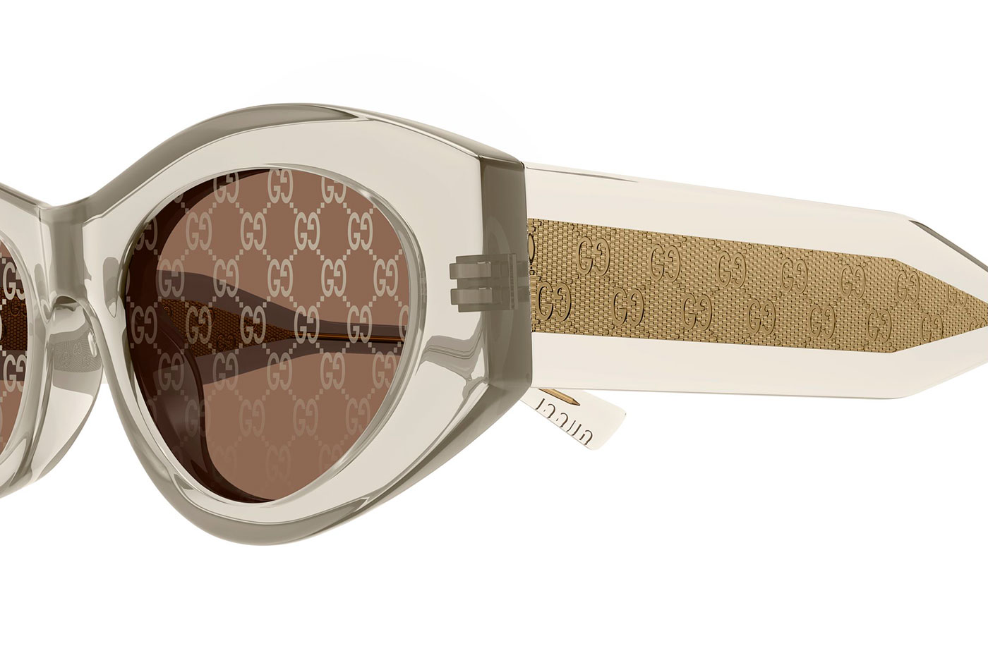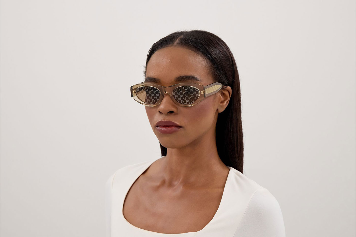 The GG2065S reveals Gucci’s distinctive craftsmanship through a refined interplay of transparency and detail. The soft oval silhouette is elevated by a transparent colour palette that subtly showcases the internal wirecore, with the iconic G monogram pattern. This delicate design element adds depth and character to the frame, creating a sophisticated visual effect. The design blends modern elegance with unmistakable Gucci heritage.