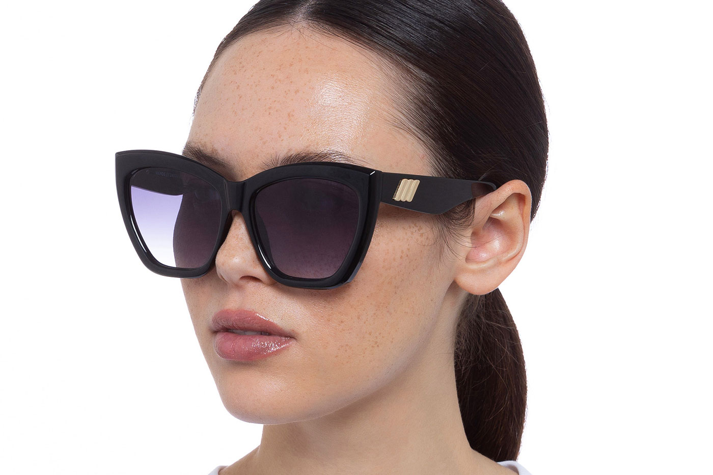The oversized Vamos sunglasses by Le Specs offer a stylish frame. With a squared cat eye shape and a fully acetate frame construction this design is an effortless option. Finished with Le Specs’ flagstripe gold metal motif on the temples.
