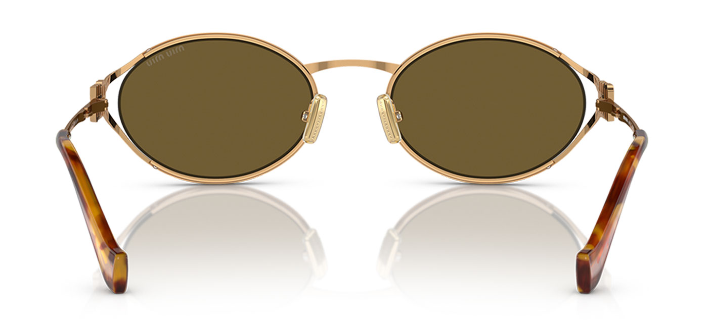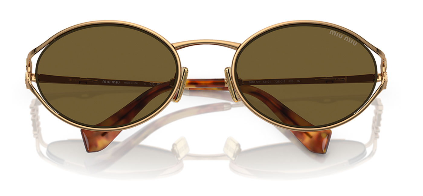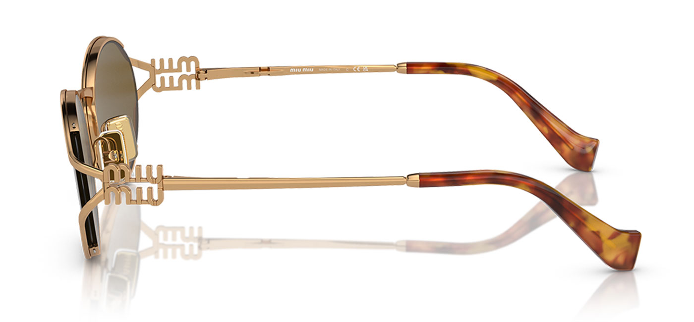 The MU52YS sunglasses from Miu Miu are pushing the boundaries of design with their vertical logo being fully incorporated into the hinge design and metal frame. The MU52YS feature a thin and elegant metal rim that detaches from the lens before meeting the vertical Miu Miu logo hinge.