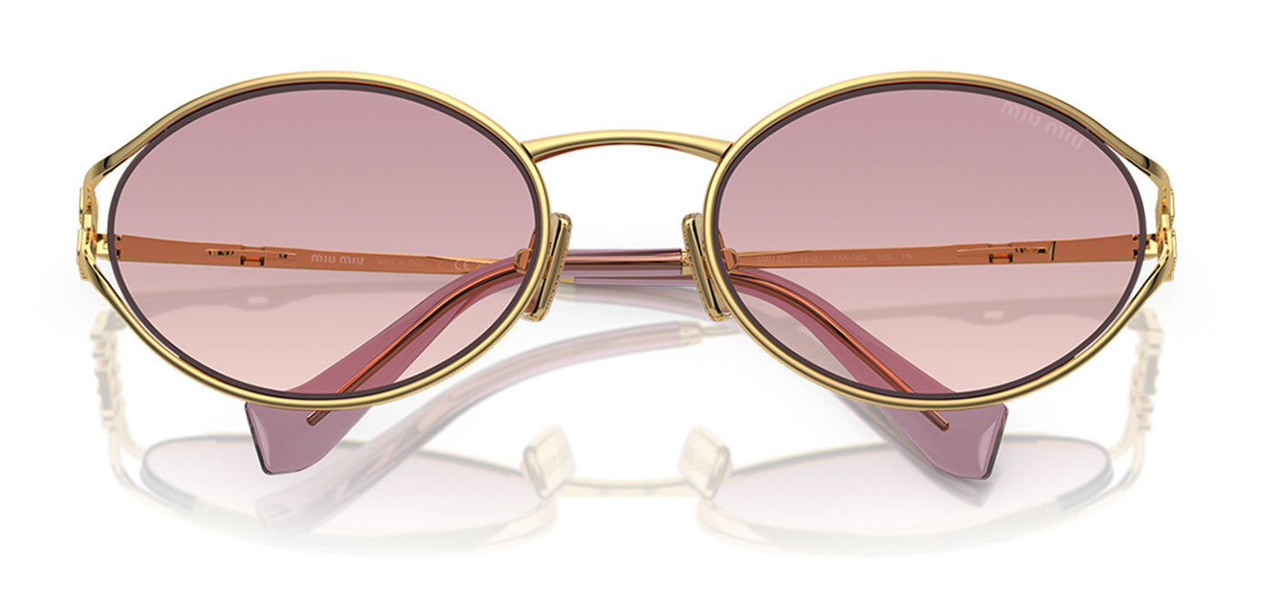 The MU52YS sunglasses from Miu Miu are pushing the boundaries of design with their vertical logo being fully incorporated into the hinge design and metal frame. The MU52YS feature a thin and elegant metal rim that detaches from the lens before meeting the vertical Miu Miu logo hinge.