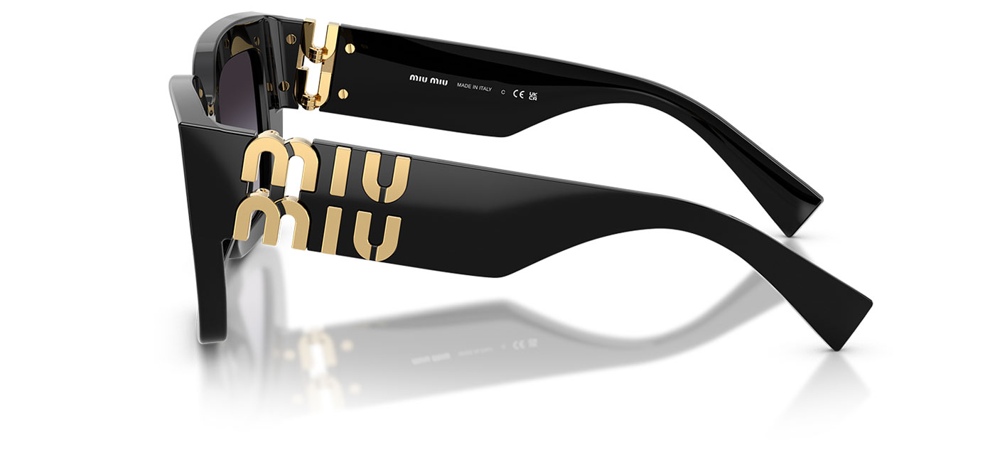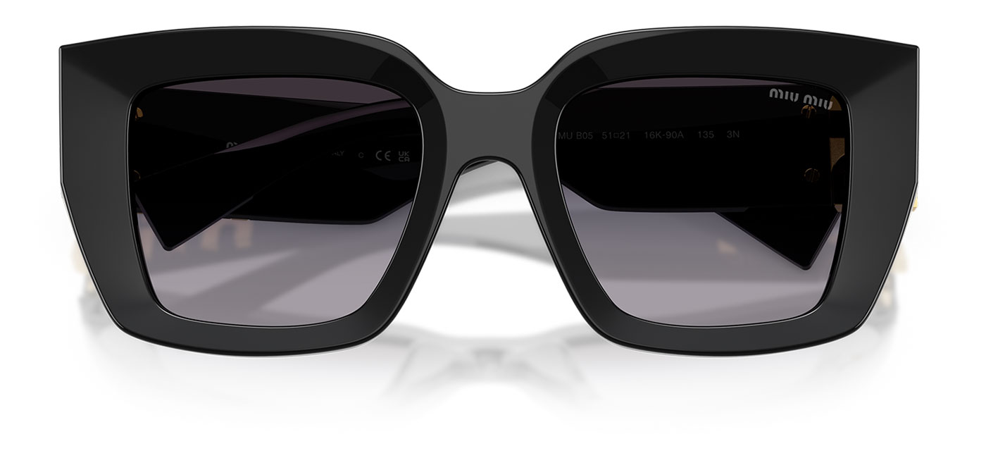 The Miu Miu MUB05S Sunglasses bring bold glamour and refreshing style to any look. Featuring an dramatic square silhouette, these frames are crafted in sleek acetate for a striking statement. Each temple has been adorned with the iconic MIU MIU logo in polished metal tones, adding a touch of luxury and instantly recognizable branding. Perfect for fashion-forward individuals, these sunglasses combine elegance and playful edge, true to Miu Miu’s signature aesthetic.