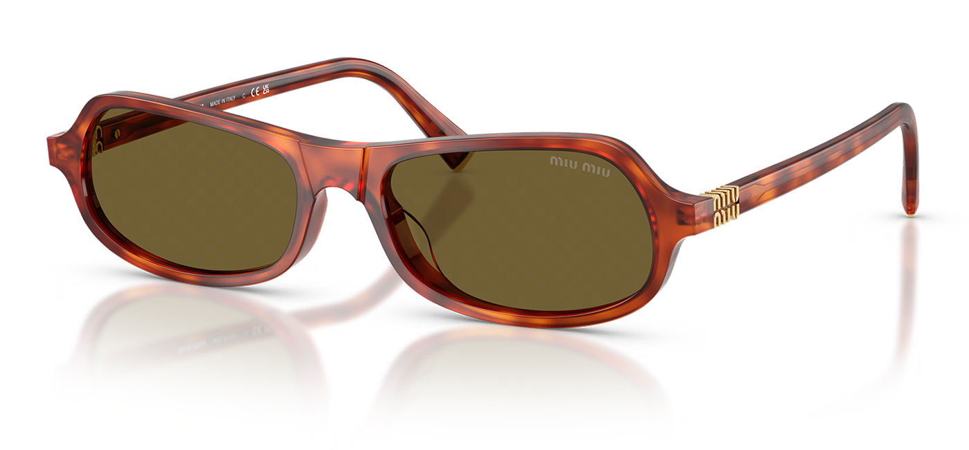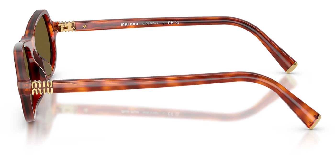 Inspired by effortless elegance, these frames from Miu Miu combine soft curves with subtle angular detailing around the lenses for a refined yet playful finish. The silhouette is elevated by the iconic Miu Miu logo placed at the temples, adding a distinctive signature touch. Slim, streamlined temples are finished with a gold vertical Miu Miu logo that also integrates into the hinge mechanism, bringing together functionality and a polished, luxury edge. Perfect for elevating everyday looks, this design captures a balance of sophistication and contemporary charm.