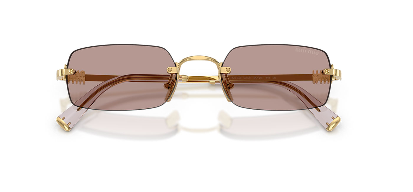 Paying homage to the Y2K era, the Miu Miu MUB50S sunglasses embody that retro-glam aesthetic from the early 2000’s. With their sleek design, the rimless rectangular frame features gold-toned temples, crafted with intricate detailing, adding a touch of glamour and refinement. These sunglasses combine lightweight comfort with bold elegance, perfect for fashion-forward individuals, the MUB50S sunglasses are a statement accessory that seamlessly blends timeless style with Miu Miu’s signature look.
