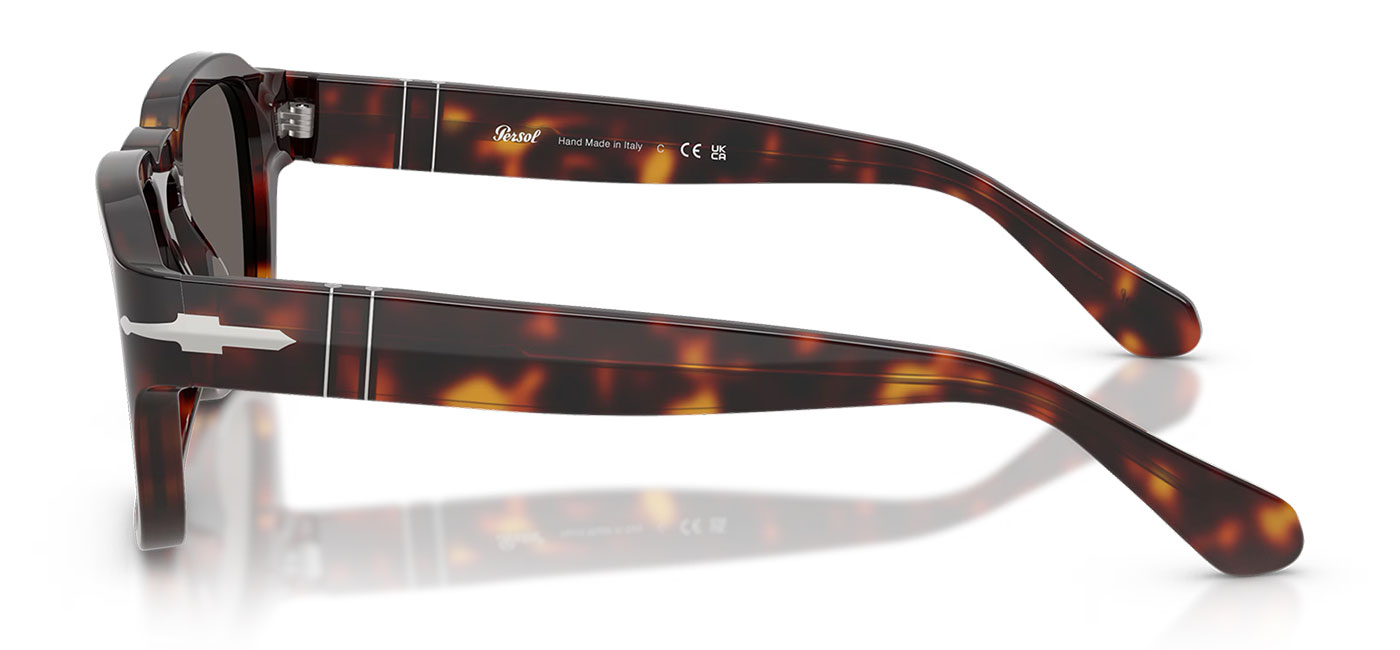Persol was created in the formative years of motorised travel, catering to the pioneers of its time: pilots, drivers and motorcyclists who were travelling at ever-increasing speeds. Persol's frames have always been crafted in its native Italy using the finest metals and acetate for its frames and crystal glass for its lenses. Persol eyewear is instantly recognisable for the signature styling of its Silver Arrow motif. Conveying a dignified flair and Art Deco influence which is a product of the time of its production in the late 1930s, the arrow is now synonymous with the artistic expression Persol prides itself on.