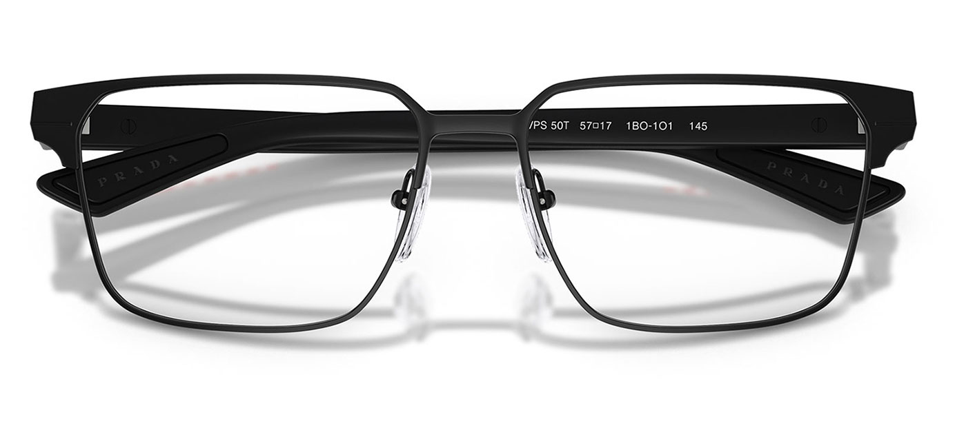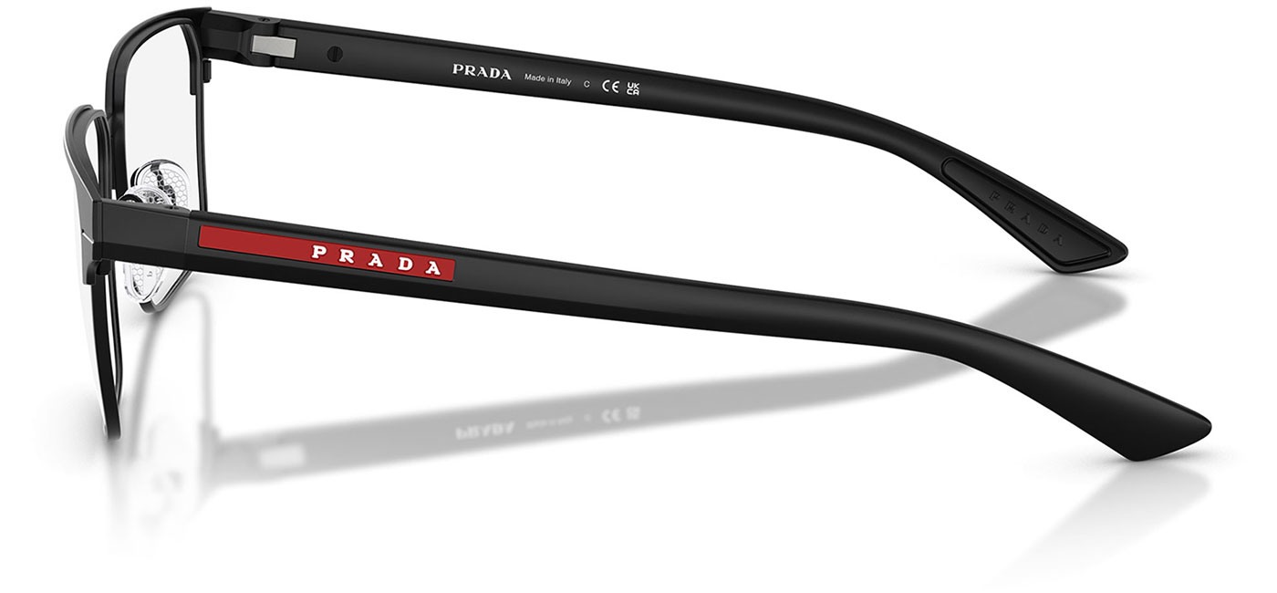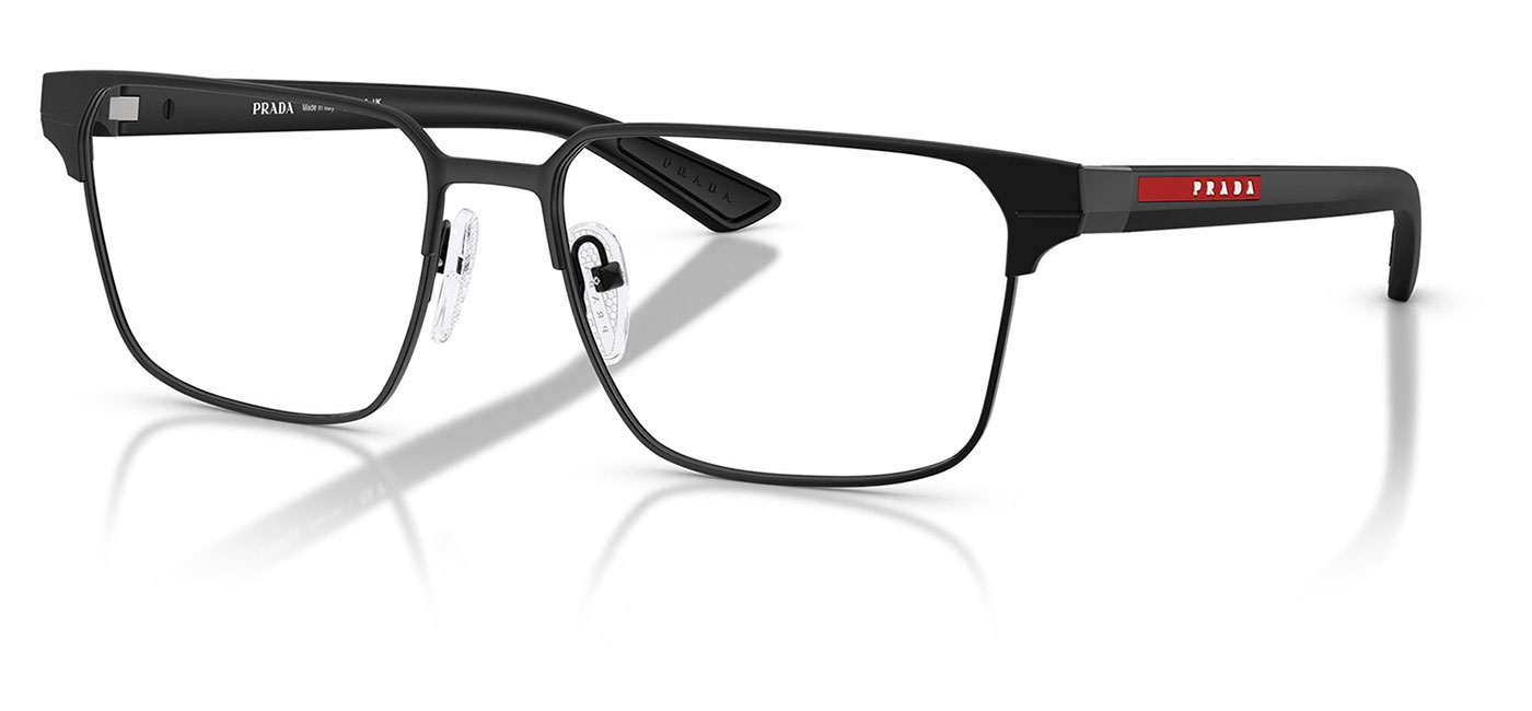 Prada Linea Rossa PS50TV glasses combine bold structure with modern sporting elegance. Defined by a strong square silhouette and a distinctive thicker brow line, this frame delivers a confident yet refined look. Slender injected nylon temples keep the design lightweight while showcasing the iconic Prada Linea Rossa logo for unmistakable branding. Comfort-driven details, including black over-injected temple tips and a flex hinge mechanism, enhance durability and everyday wearability. Blending luxury styling with performance-inspired design, the PS50TV is ideal for effortless daily use.