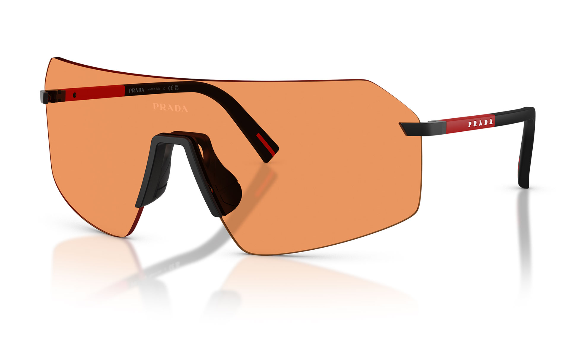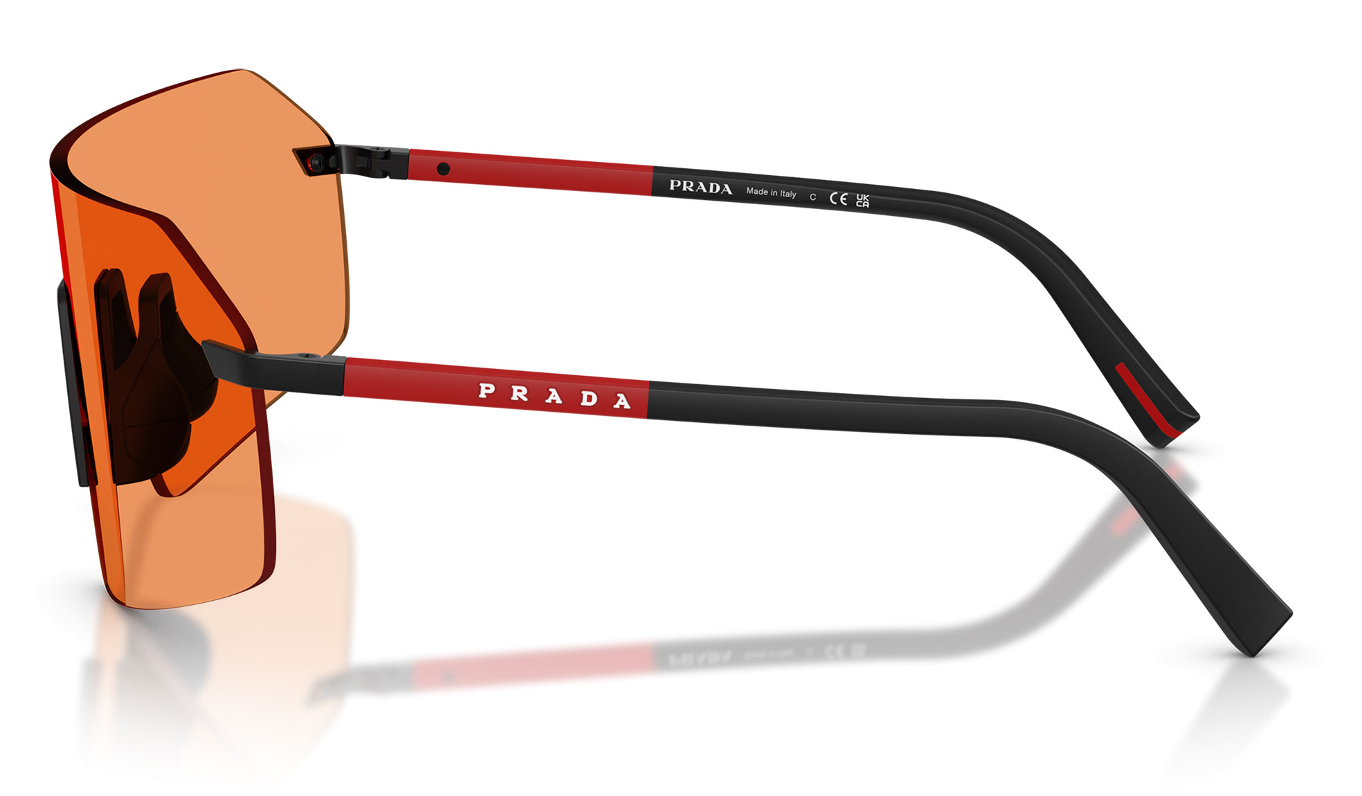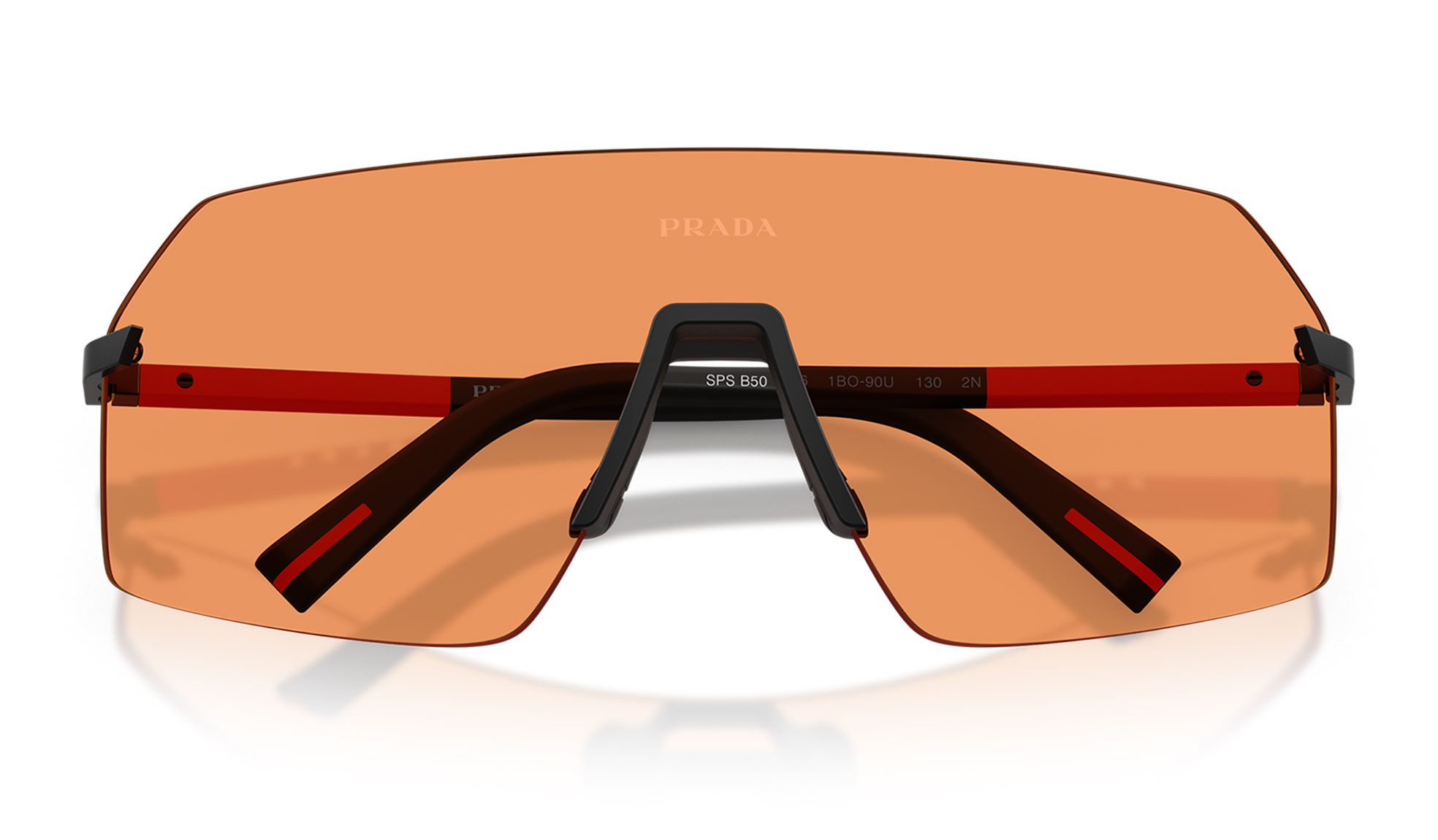 A statement making design in Prada Linea Rossa’s line this season, arrives the PSB50S Sunglasses. Elevated by a rimless shield, perfect for all types of sports and activities. The striking, single lens silhouette offers a of wrapped design, combine with lightweight slender temples – boldly accented with the signature Prada Linea Rossa red stripe logo, a true nod to the brand’s sportswear heritage and technical precision. Comfortable, durable and engineered for those who demand both cutting-edge aesthetics and functional excellence.