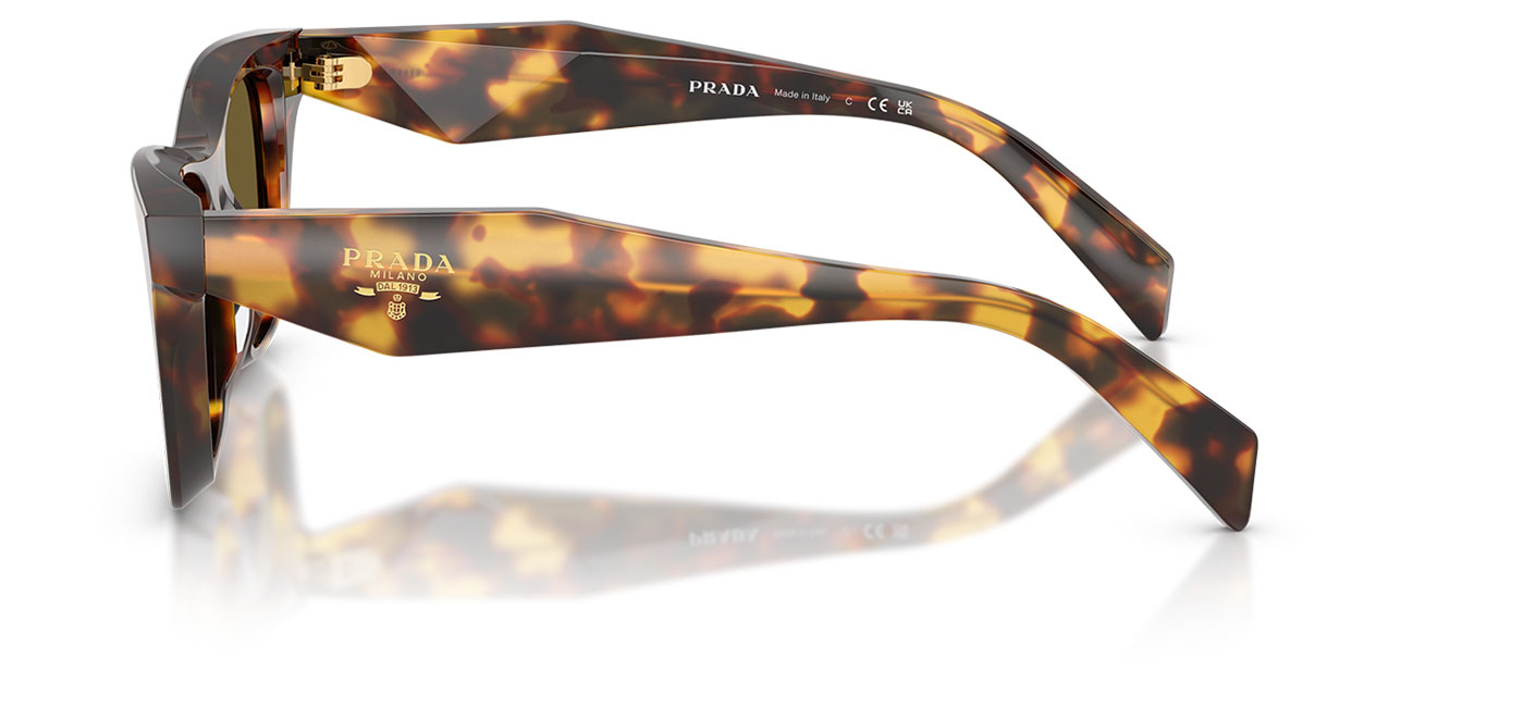 The PRC07S Sunglasses from Prada exude their bold silhouette with a geometric style that flows through the temples. With its contemporary sophistication and detailed craftsmanship, these acetate frames, feauture a combination of timeless elegance with a modern edge. The wide temples are subtly accented with the signature Prada logo, reflecting understated refinement. Perfect for those wanting to elevate any look with iconic Italian flair.