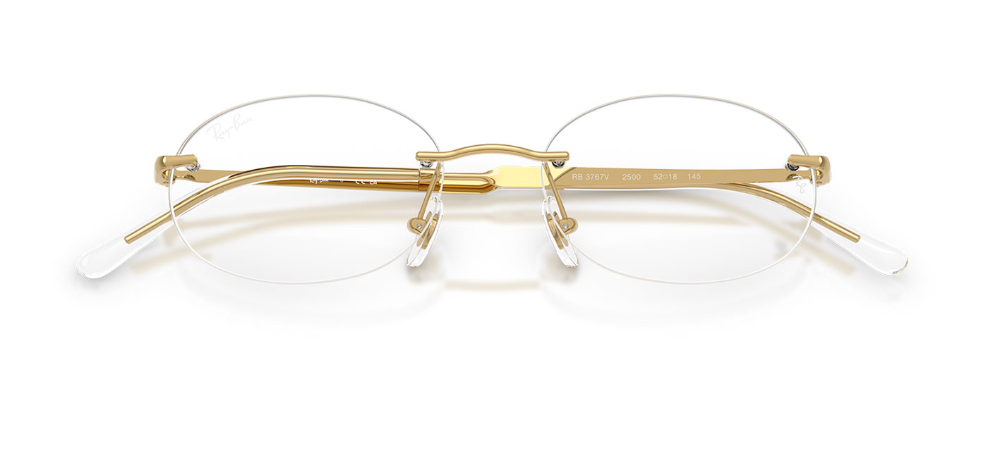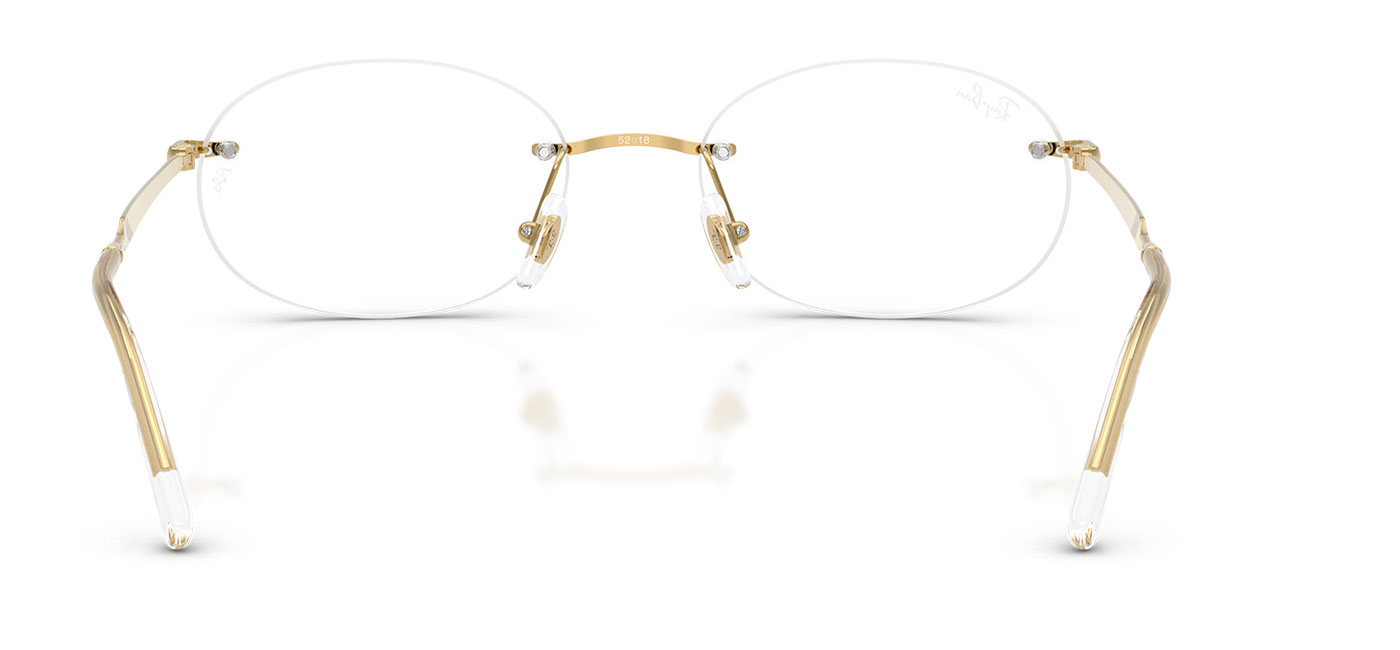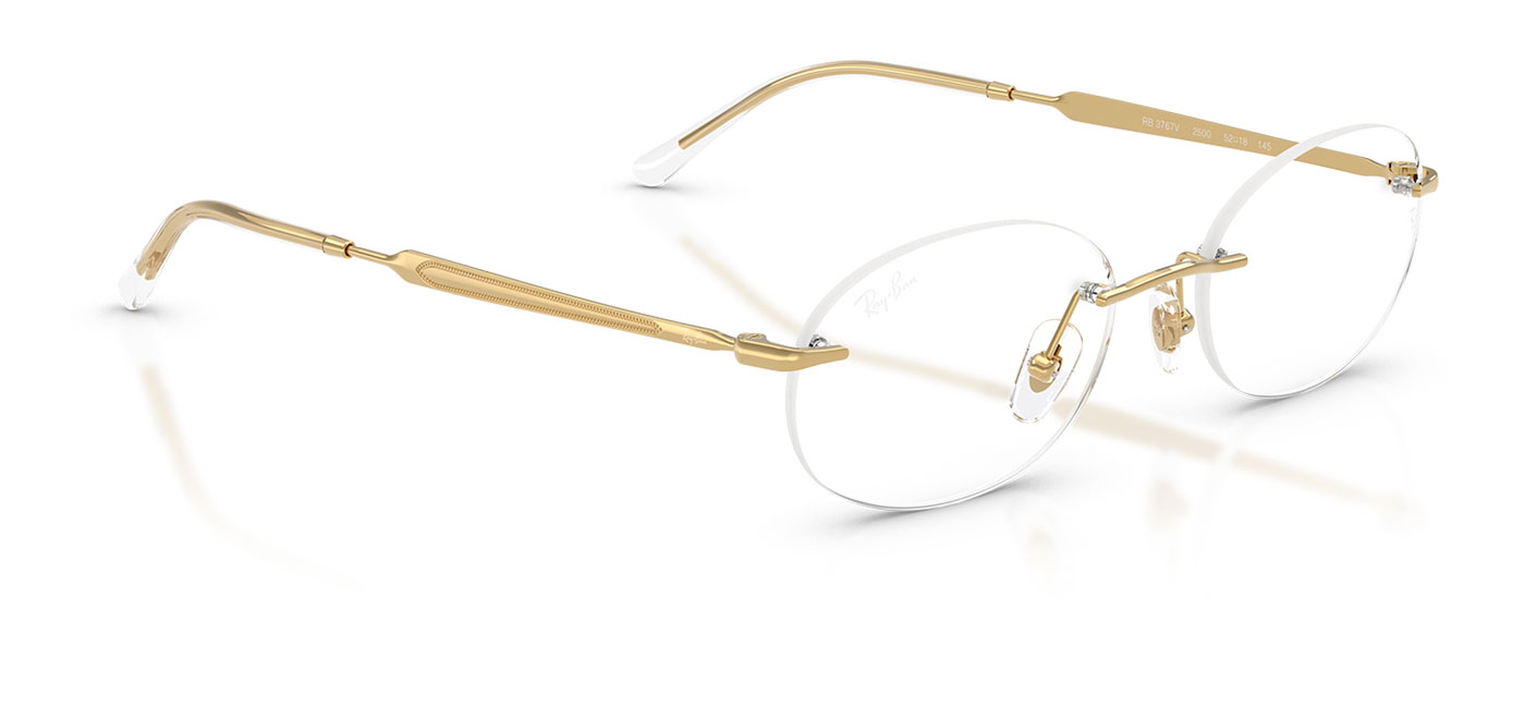 The Ray-Ban RX3767V glasses elevate the timeless oval silhouette with a contemporary rimless design. Sleek metal temples lend a refined edge, complemented by subtle signature detailing and acetate tips for lasting comfort. Merging vintage elegance with modern sophistication, this distinguished frame is designed to leave a lasting impression.
