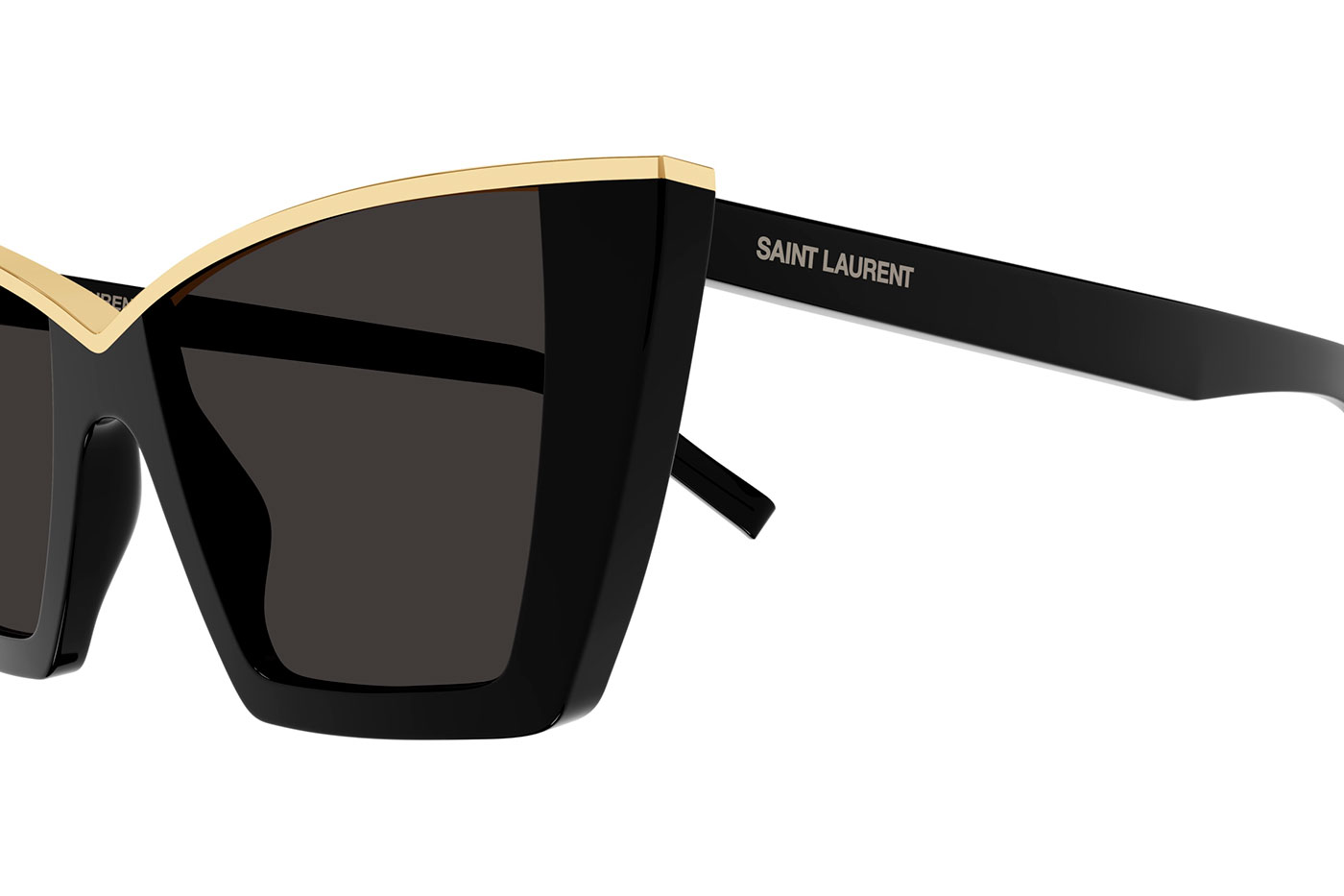 A large extravagant cat eye frame with a stunning metal centrepiece across the brow, guaranteed to catch eyes wherever you go. Finished with the Saint Laurent logo laser-etched on the temples and enriched with enamel.
