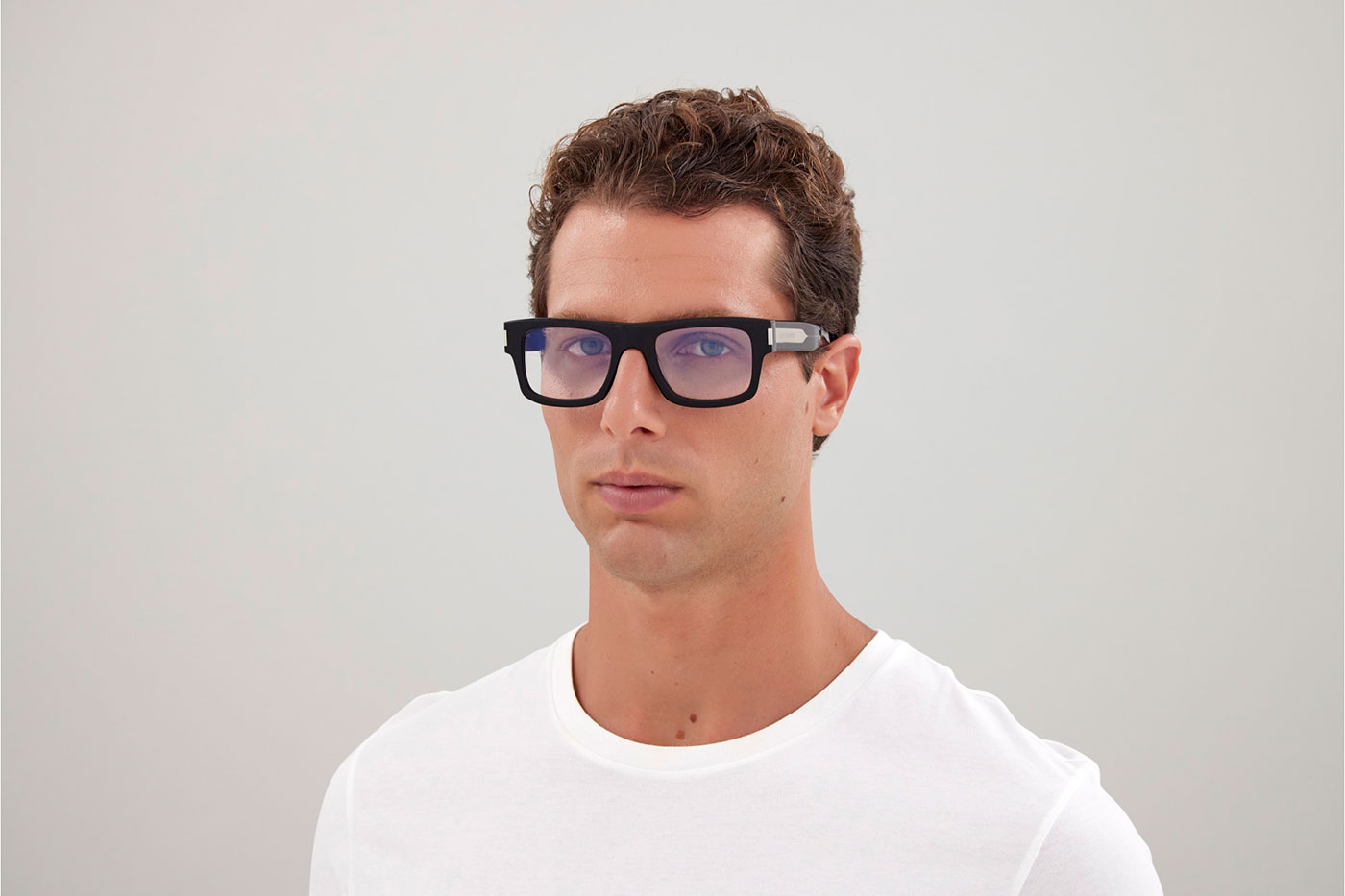 With iconic corner angles and a masculine rectangular frame, the SL 574 glasses from Saint Laurent feature an acetate front designed to create a strong Saint Laurent statement, a bold acetate temple with a visible wire core which features the Saint Laurent logo lasered into it.