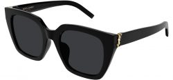 The SL M143 sunglasses by Saint Laurent showcase a super feminine wide cat-eye shape, beautifully crafted in bold full acetate. The frame’s striking silhouette is enhanced by medium-sized logo hinges on both sides, adding a touch of elegance. With their perfect blend of classic charm and modern flair, these sunglasses embody Saint Laurent’s dedication to creating timeless luxury eyewear with a contemporary edge.