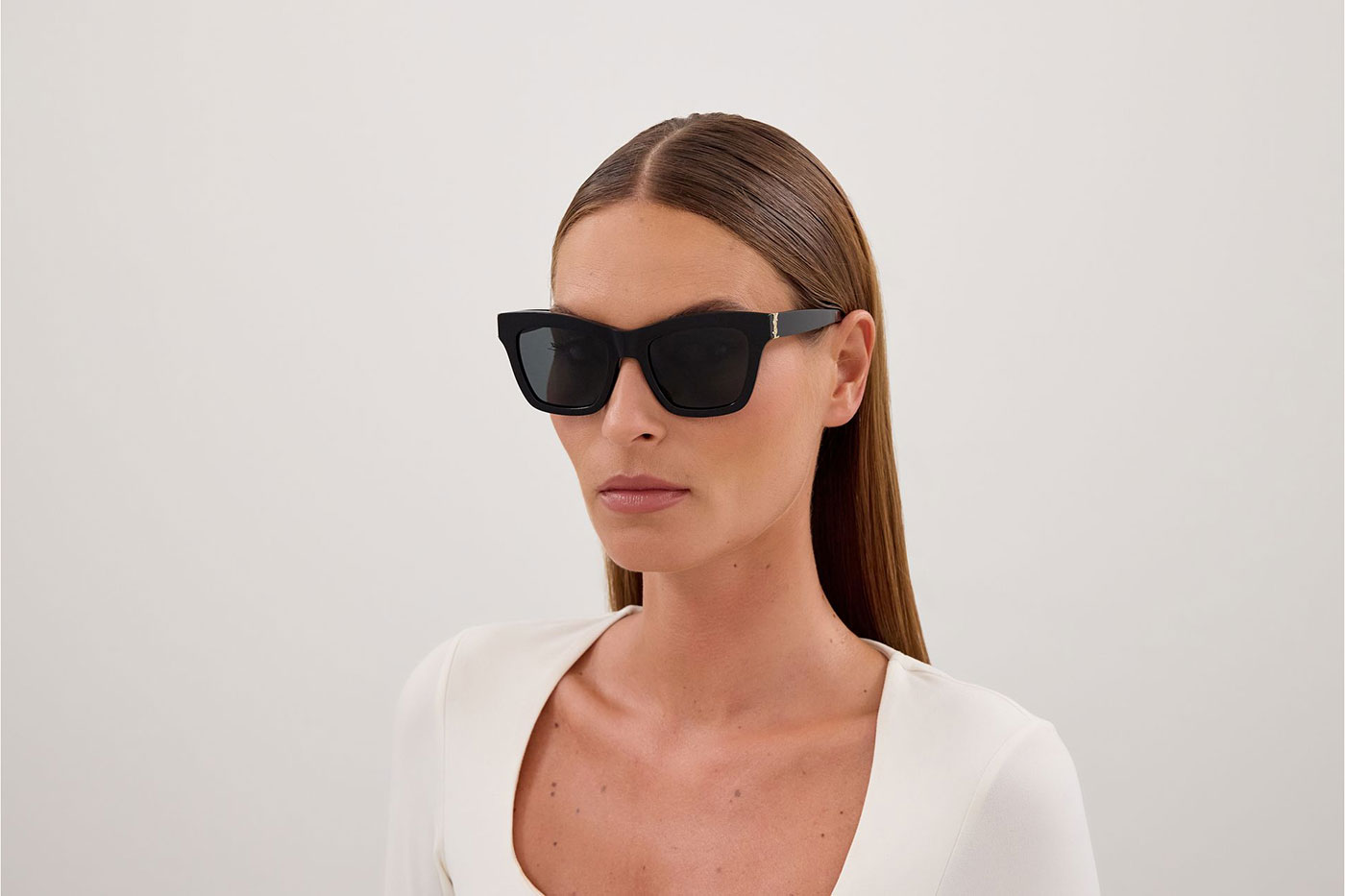 A signature design from Saint Laurent, the SL M156 sunglasses embody timeless glamour with a distinctly modern edge. Crafted in full acetate, the frame features a flattering cat-eye silhouette that brings effortless femininity and sophistication to any look. The temples are adorned with the iconic YSL monogram hinge in a refined medium size, serving as both a functional detail and a bold emblem of the house’s heritage. Elegant yet statement-making, the SL M156 seamlessly blends contemporary style with classic Saint Laurent allure.