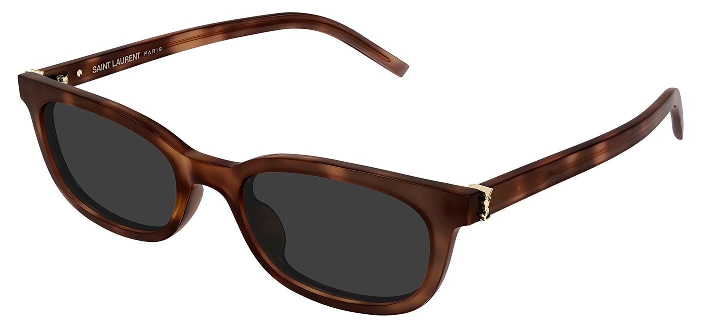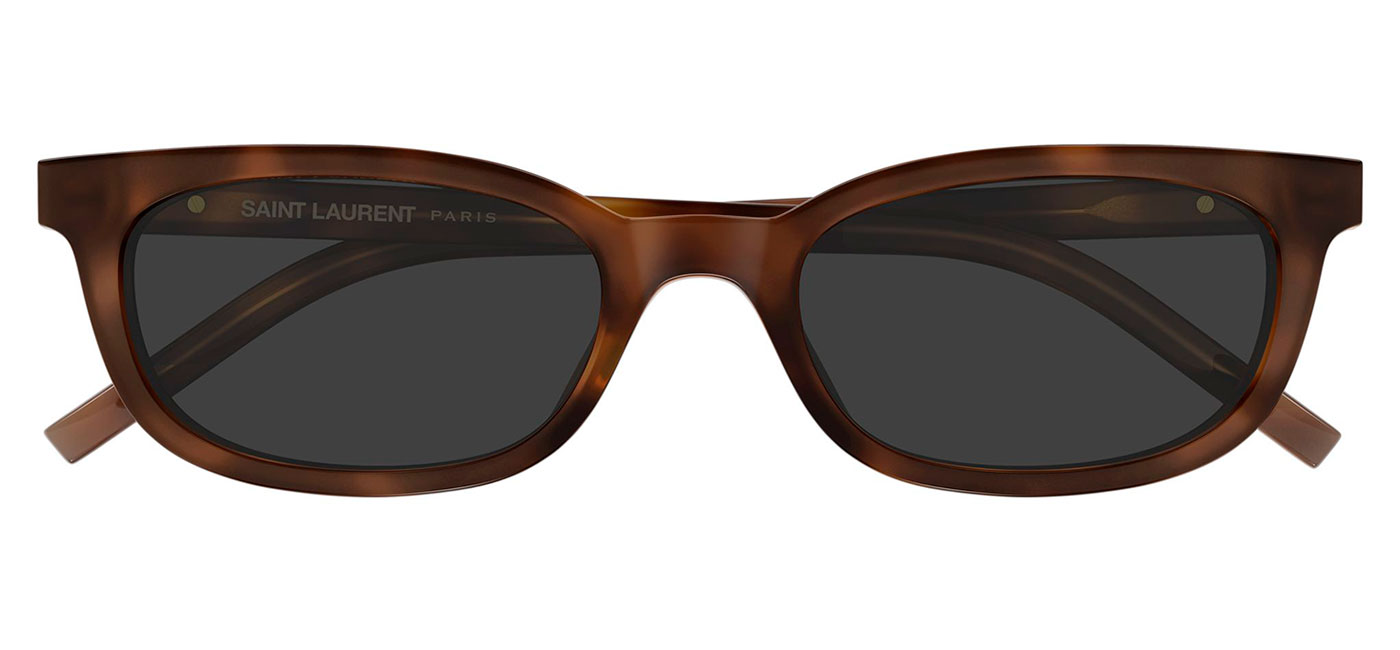 Refined and effortlessly chic, the SL M160 sunglasses by Saint Laurent capture the essence of modern feminine style. Designed with a sleek, narrow rectangular silhouette and a slim, lightweight construction, the frame offers a contemporary look inspired by minimalist fashion. The temples are subtly enhanced with the YSL monogram hinge on both sides, a delicate yet distinctive detail that reflects the house’s iconic heritage. Blending understated elegance with signature Saint Laurent glamour, the SL M160 is a sophisticated finishing touch for any look.